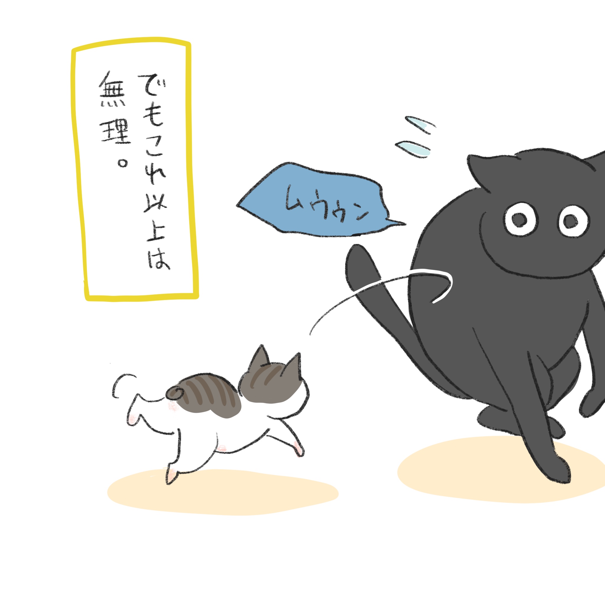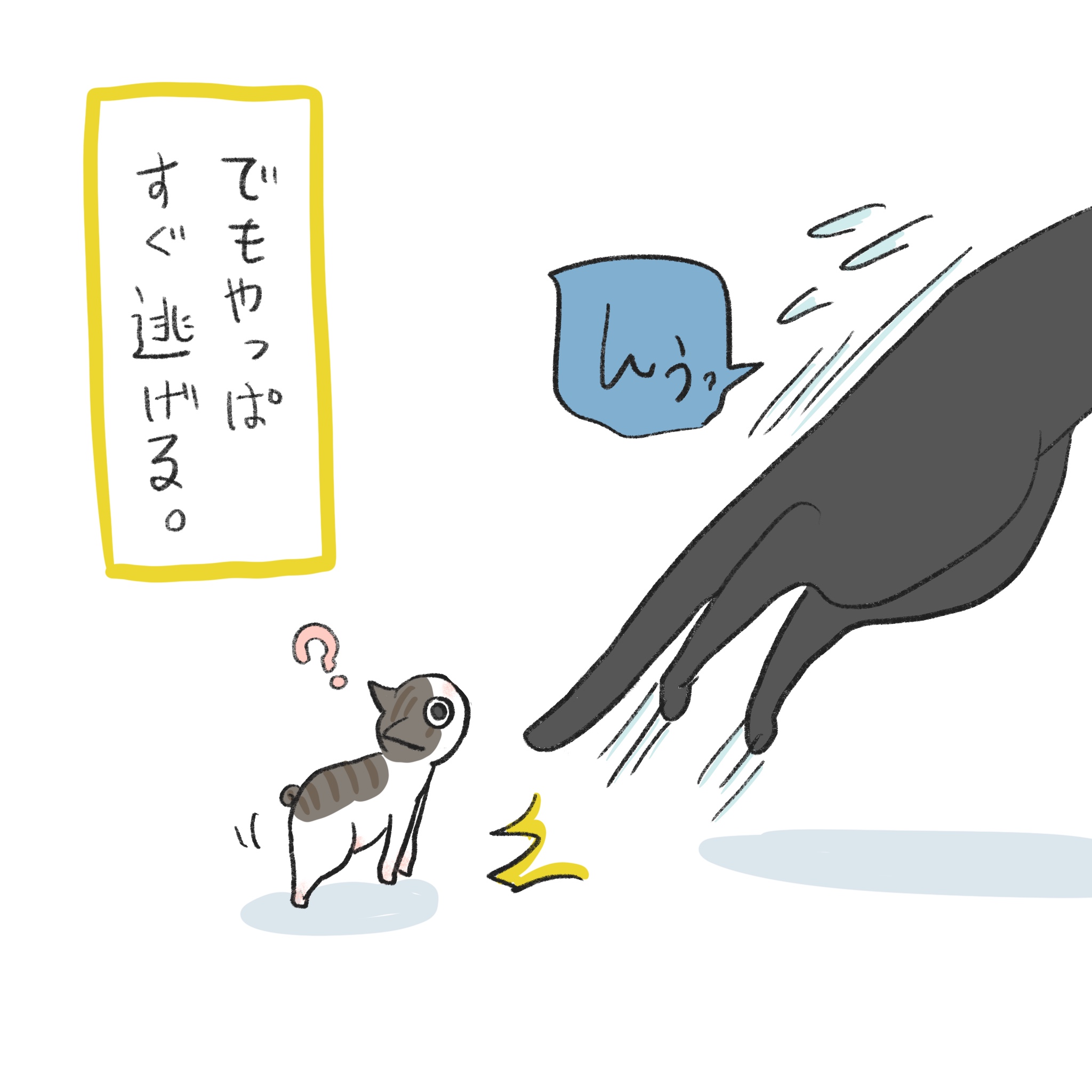 こんにゃにかわいいぼくが怖いなんて、くろもにいちゃんは本当にビビリにゃね🍊