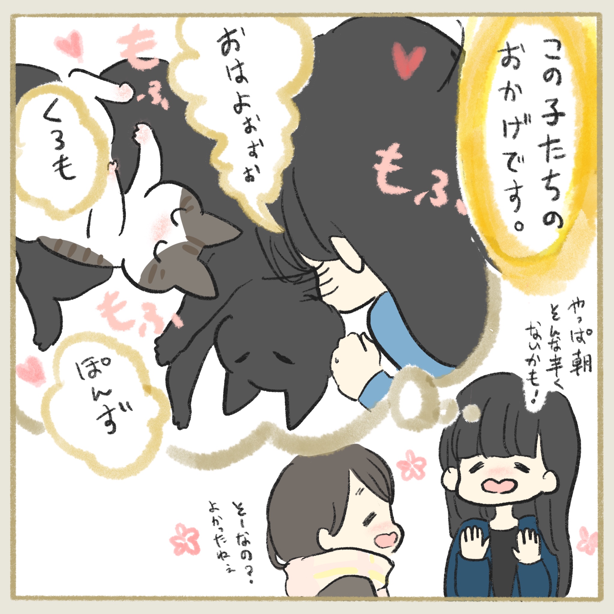 にゃんずが家に来てからというもの、少しずつ起きることが辛く無くなっていった気がします。
