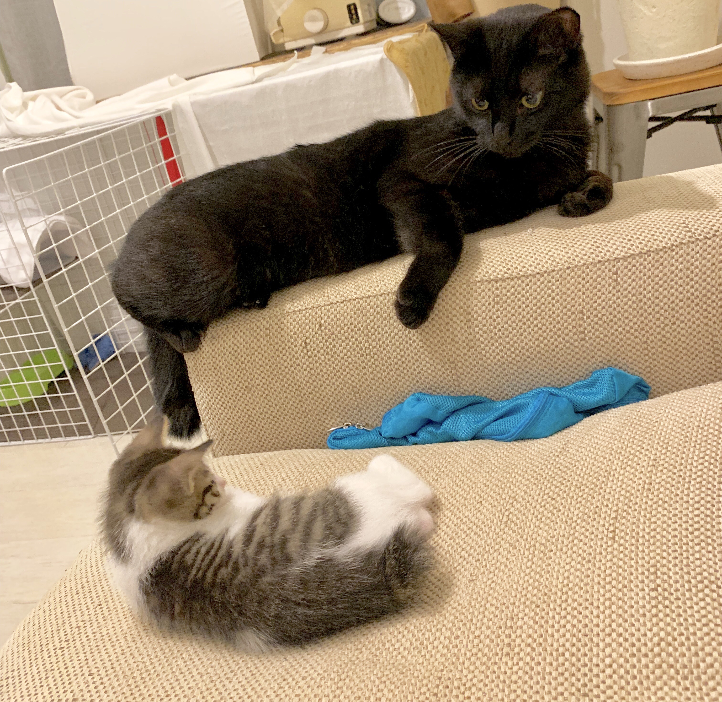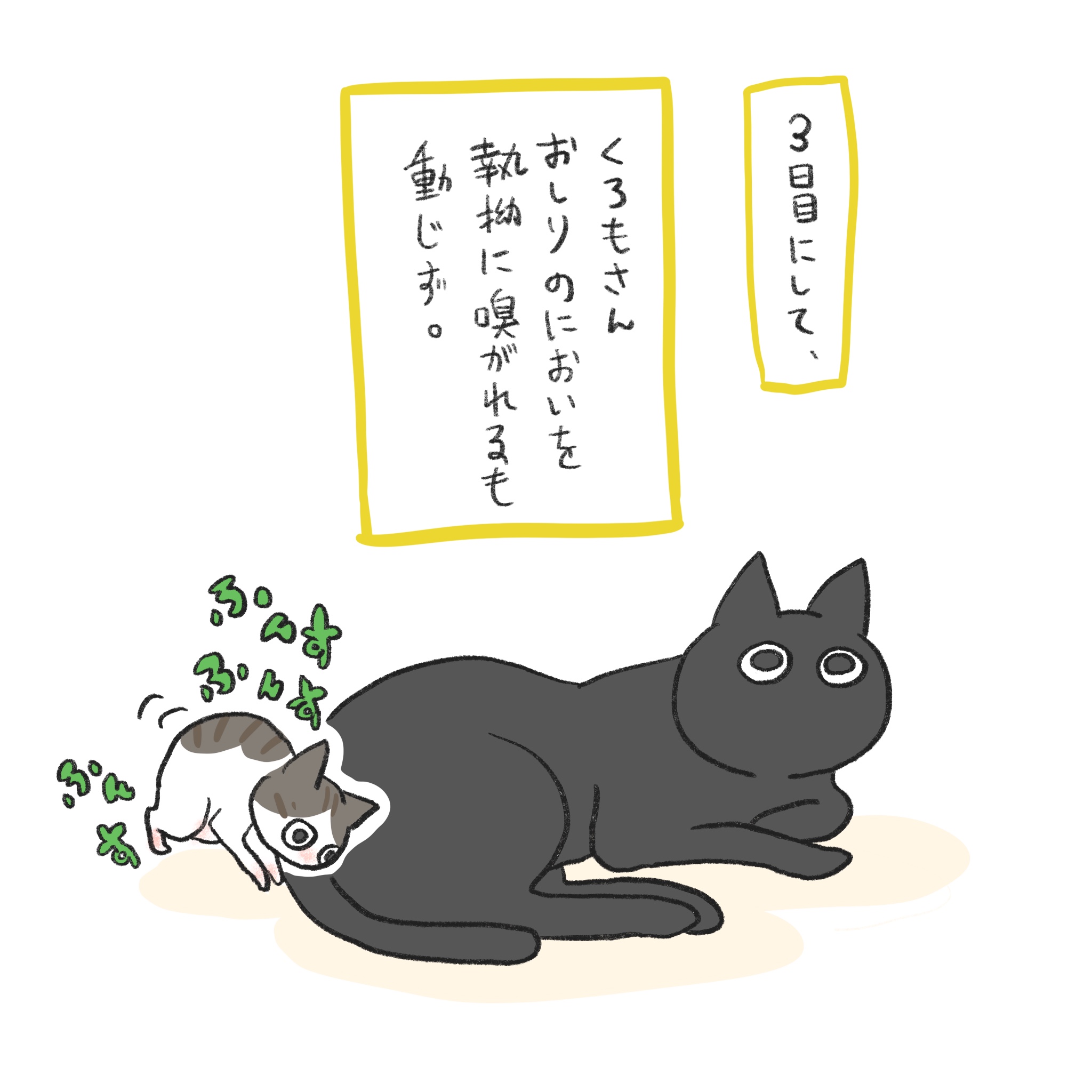 一人っ子だったくろもさんのところへ天真爛漫マイペースな子猫ぽんずがやってきました!くろもとぽんずの1週間のトライアル期間のお話です😊