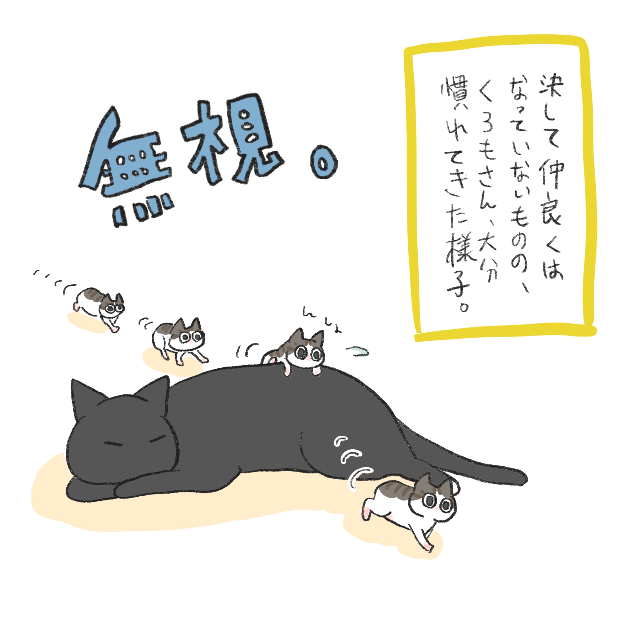 一人っ子だったくろもさんのところへ天真爛漫マイペースな子猫ぽんずがやってきました!くろもとぽんずの1週間のトライアル期間のお話です😊