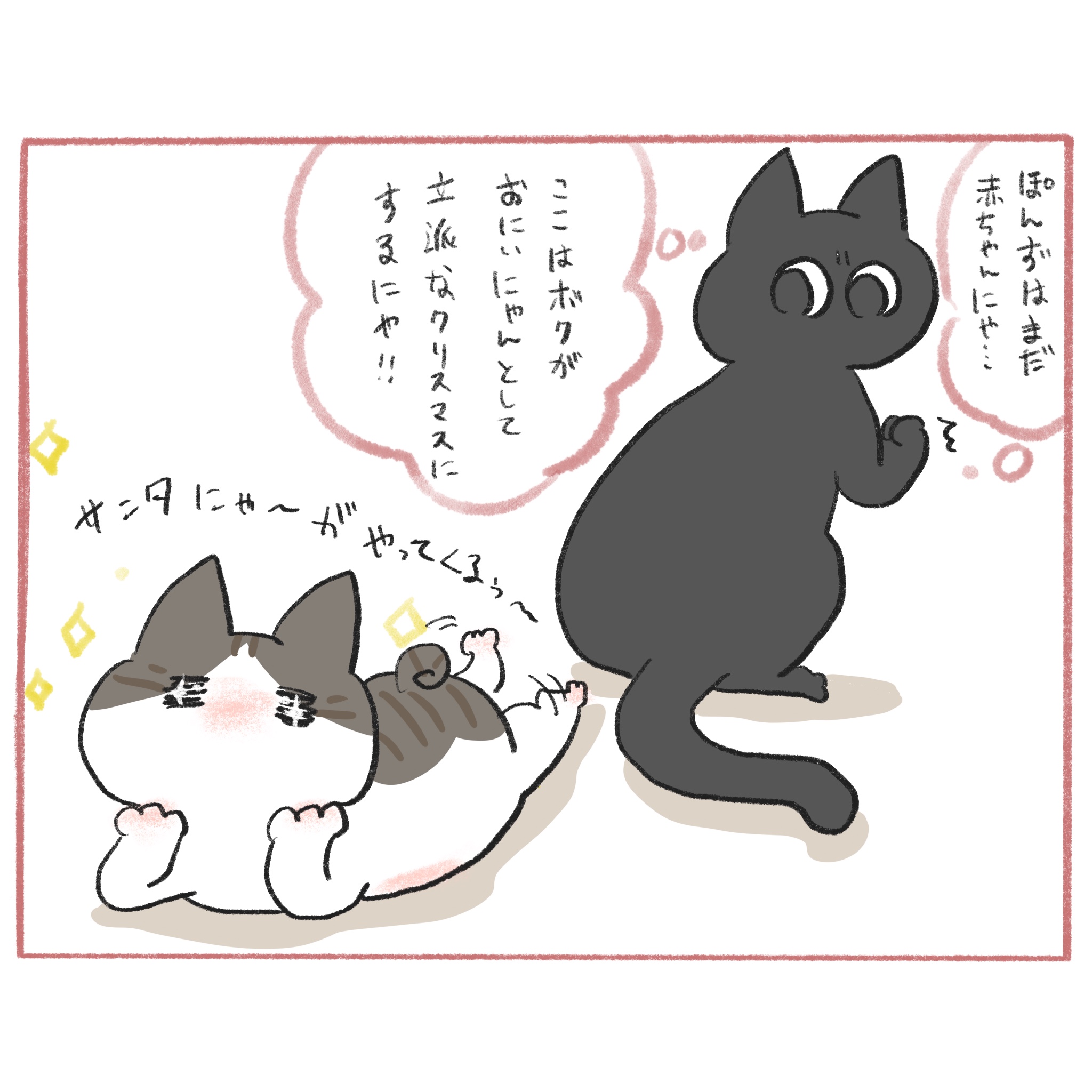 初めてのクリスマスにうっきうきなぽんずに対してくろもさんはー…?