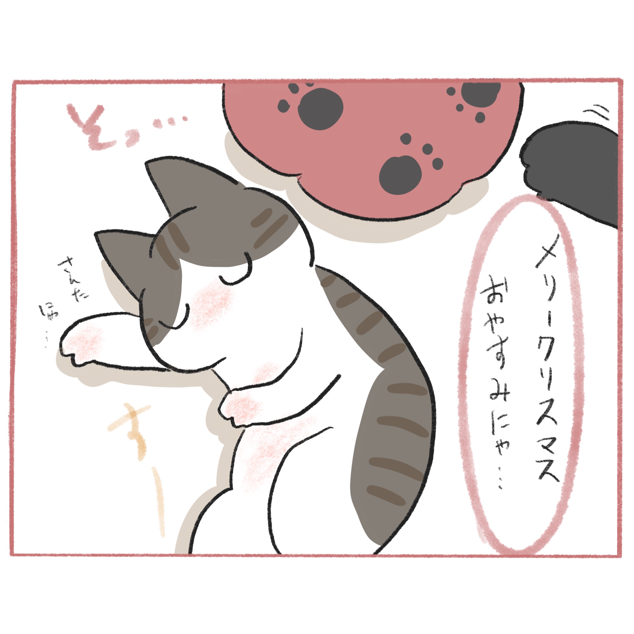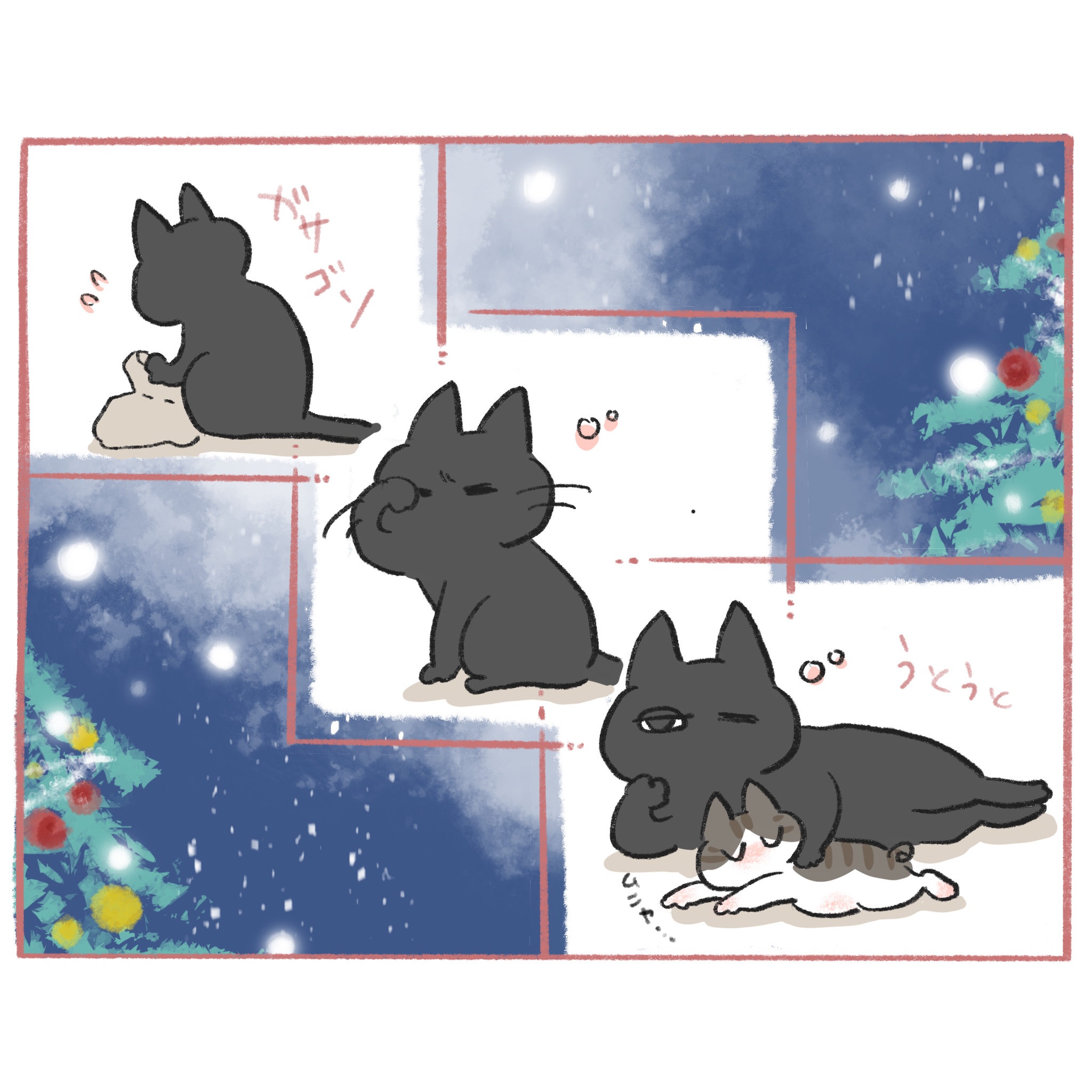 眠い目をこすりながらプレゼントを用意するくろもさん、いじらしくて可愛くて抱きしめたくなります♪