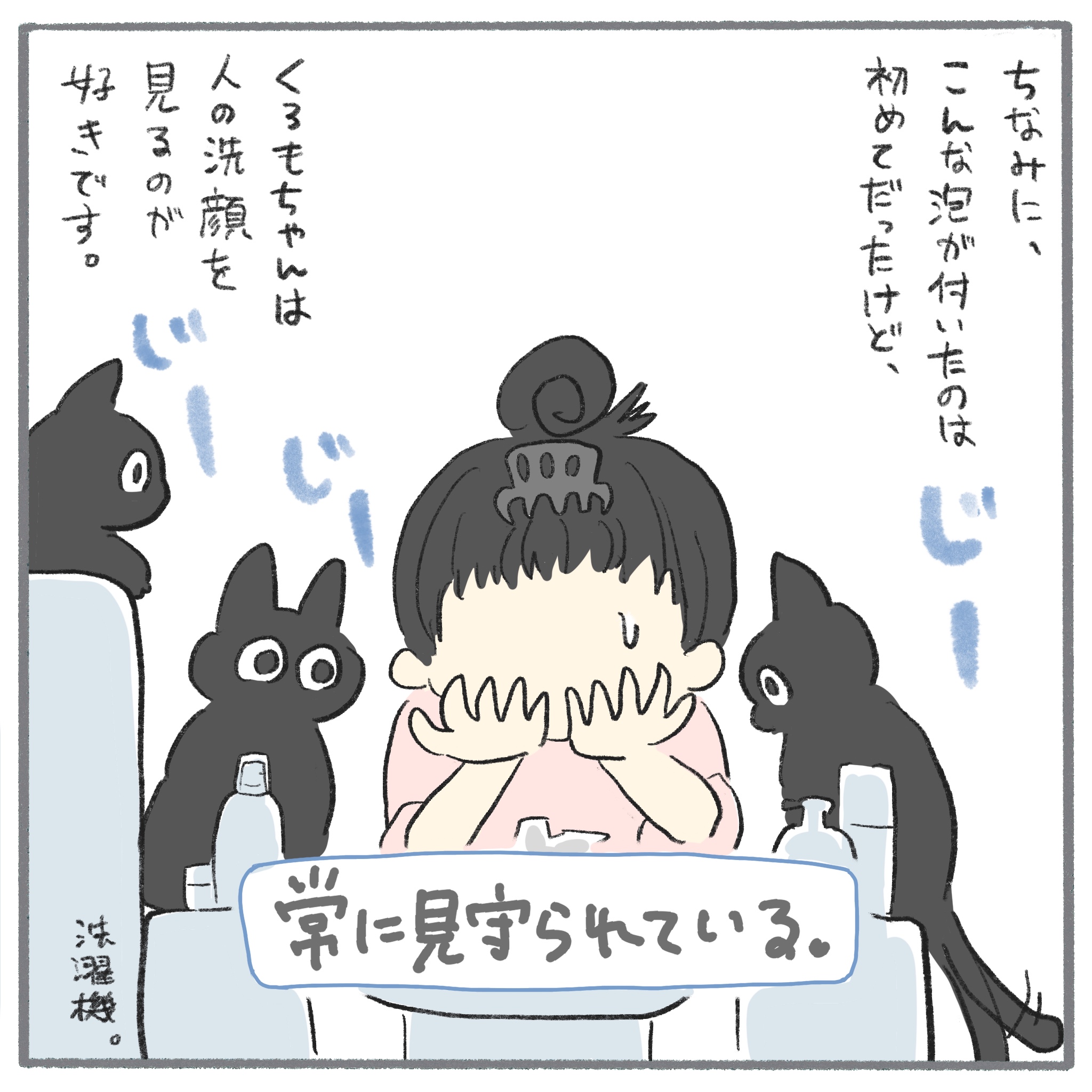 くろもちゃんは洗顔中と料理中の人間をじーっと観察するのがお好きみたいです👀じーっ