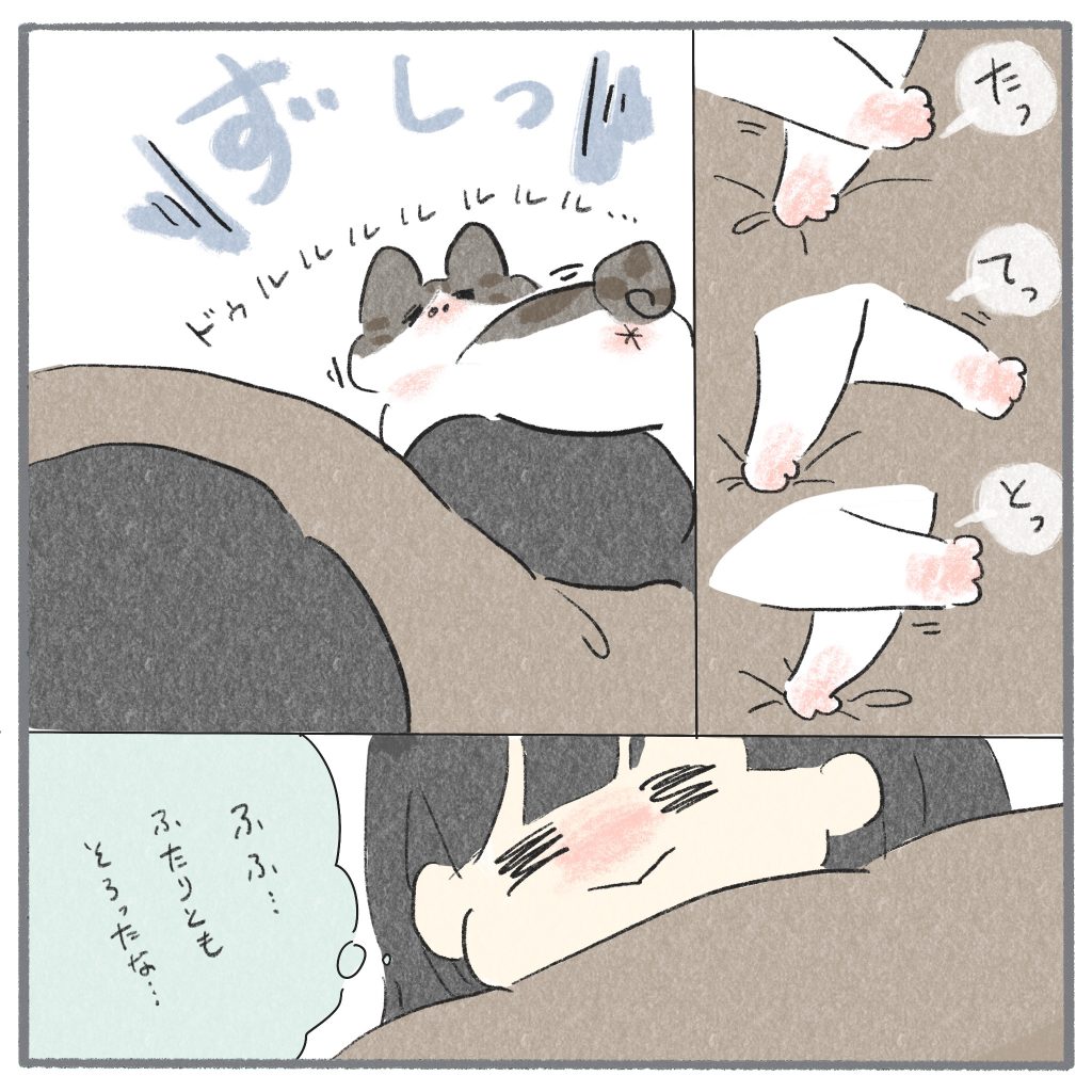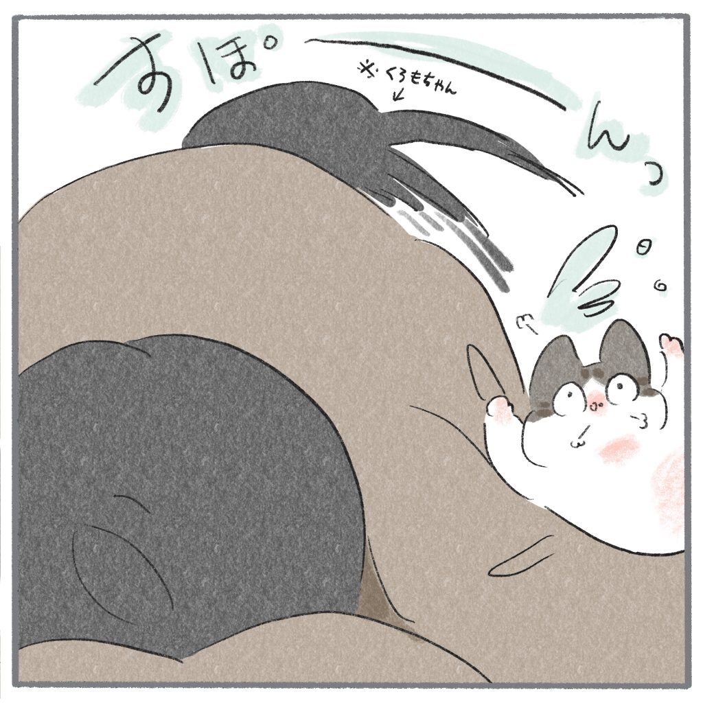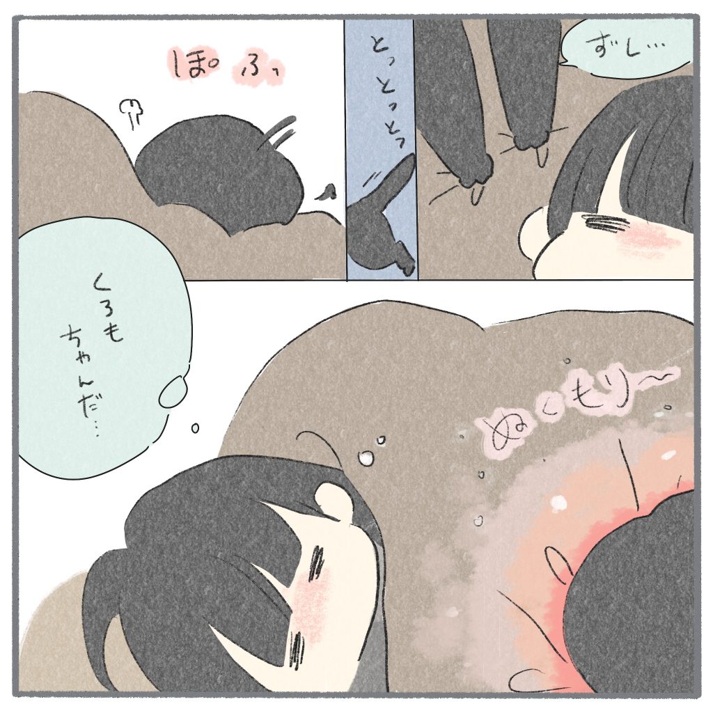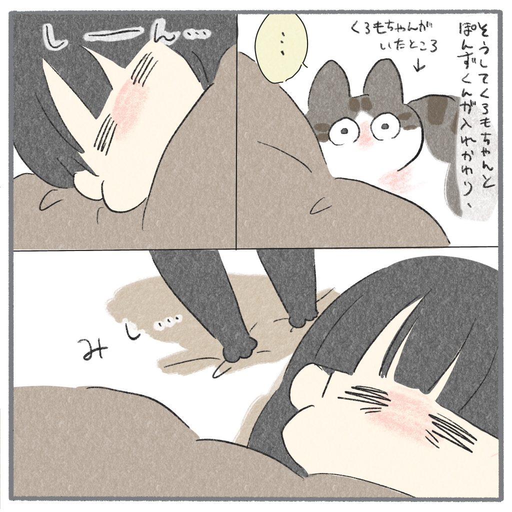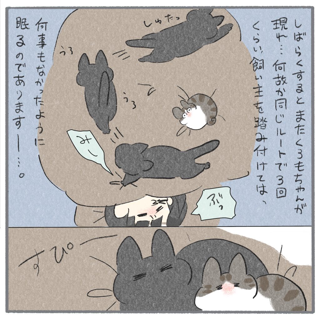 必ず枕元から現れては体を踏んでベットを横切り、そのままベットを降りてはまた枕元から現れ…という謎の行動を数回繰り返すくろもちゃんなのでした😂