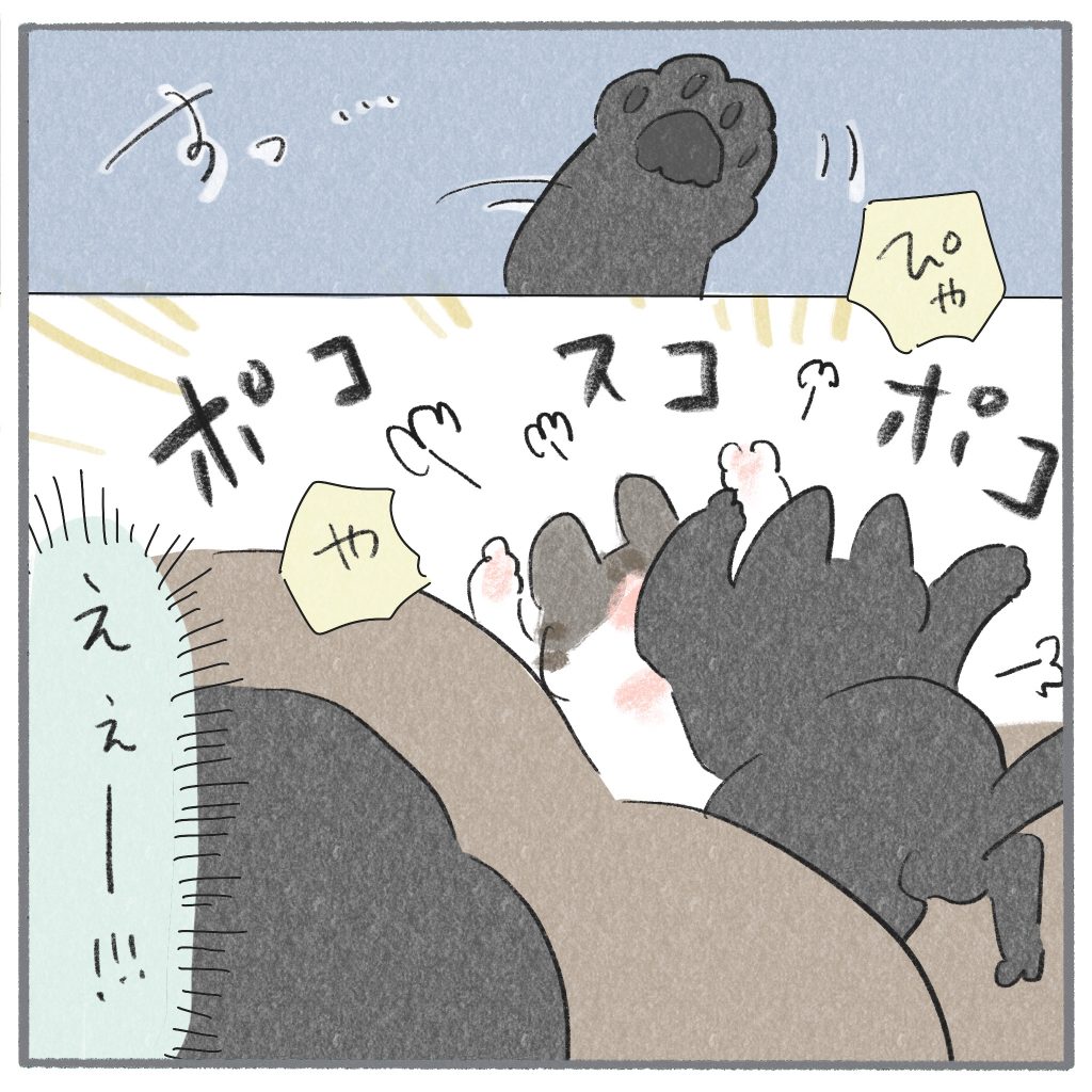 ぽんずくんはおにぃにゃんを見つけると気持ちが昂りすぎてしまうのか…くろもちゃんとちょくちょく喧嘩に発展します。(どちらが仕掛けているのかは不明…)