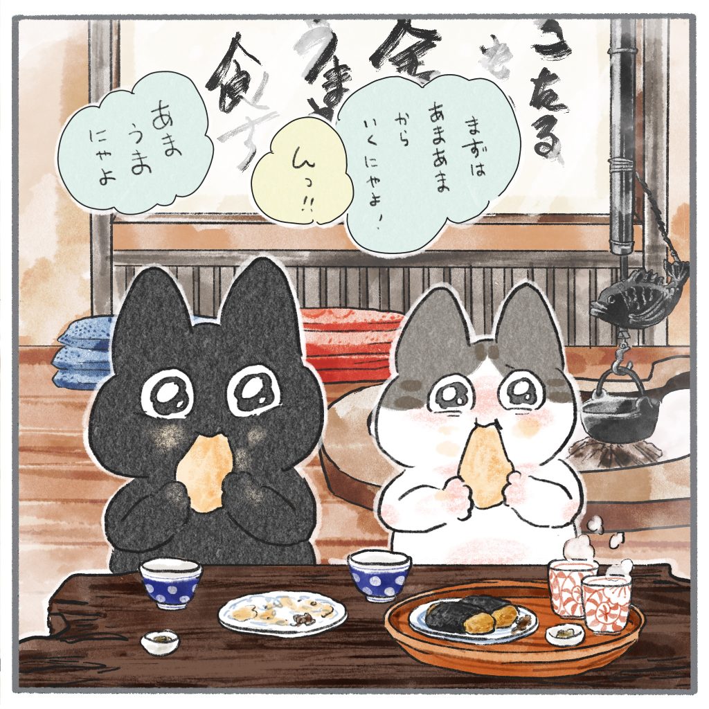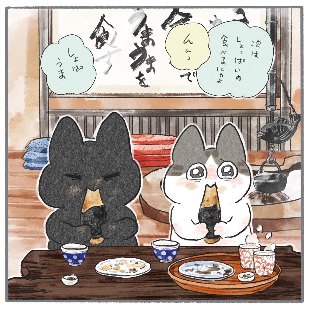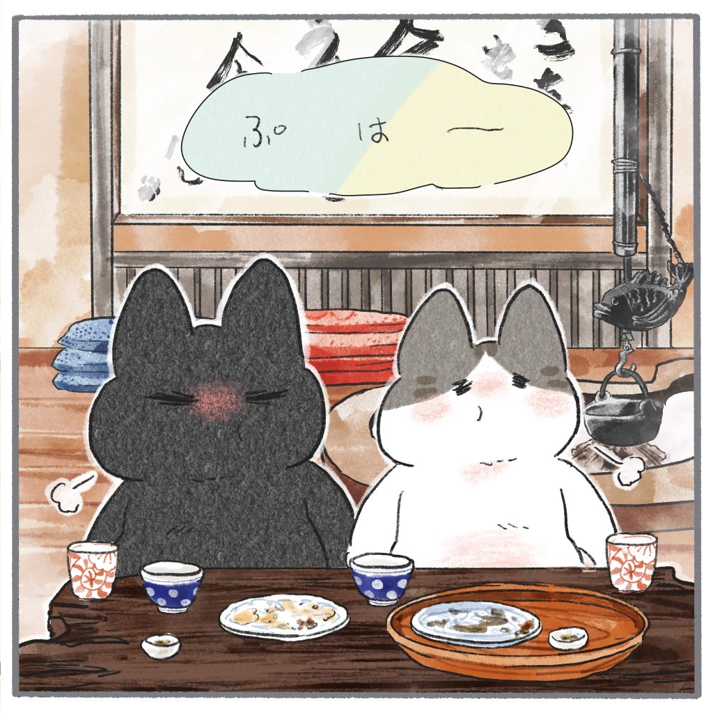 旅の思い出を残したくろもちゃんとぽんずくん。