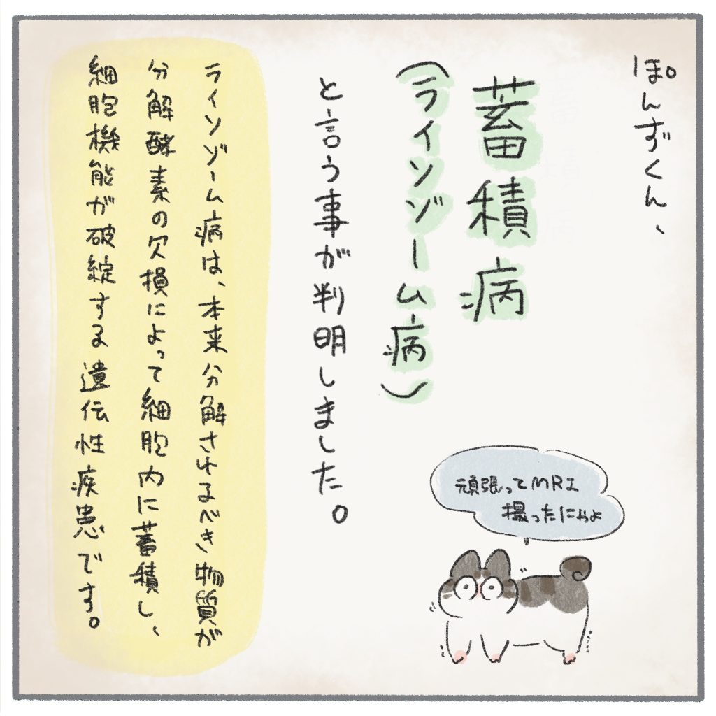 「蓄積病(ライソゾーム病)」ぽんずくんの症状を沢山調べていたのにも関わらず言われるまで全く知りませんでした。