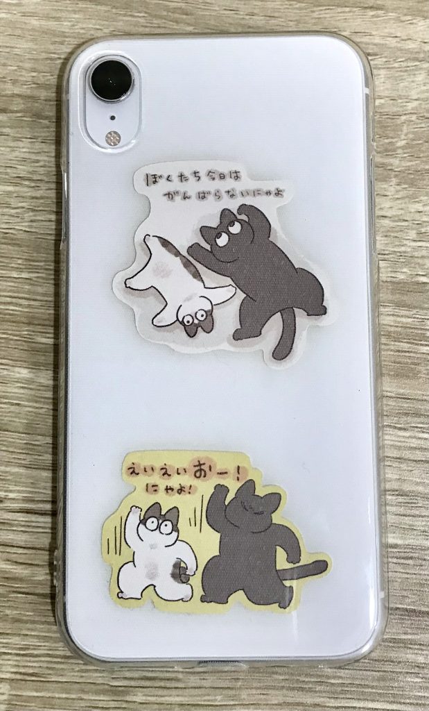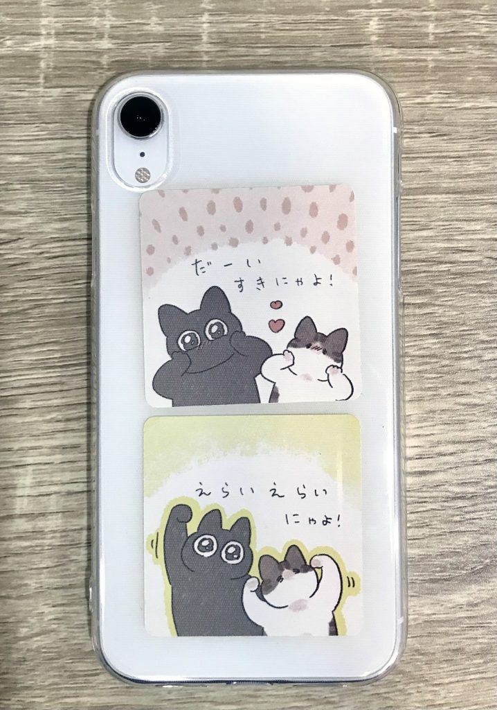 ちなみに飼い主のスマホケース(iPhone XR)に入れてみたらこんな感じでした。