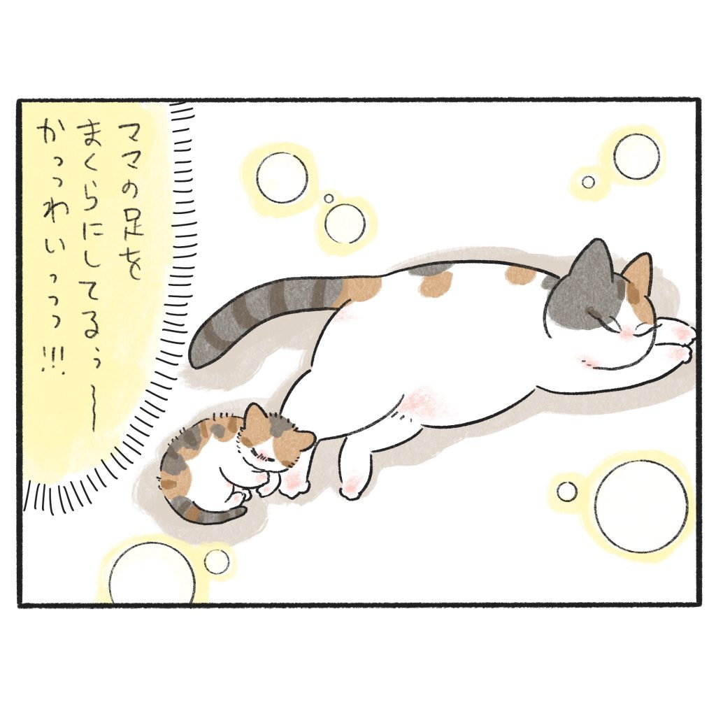 ママの足をまくらにする天使ちゃん。